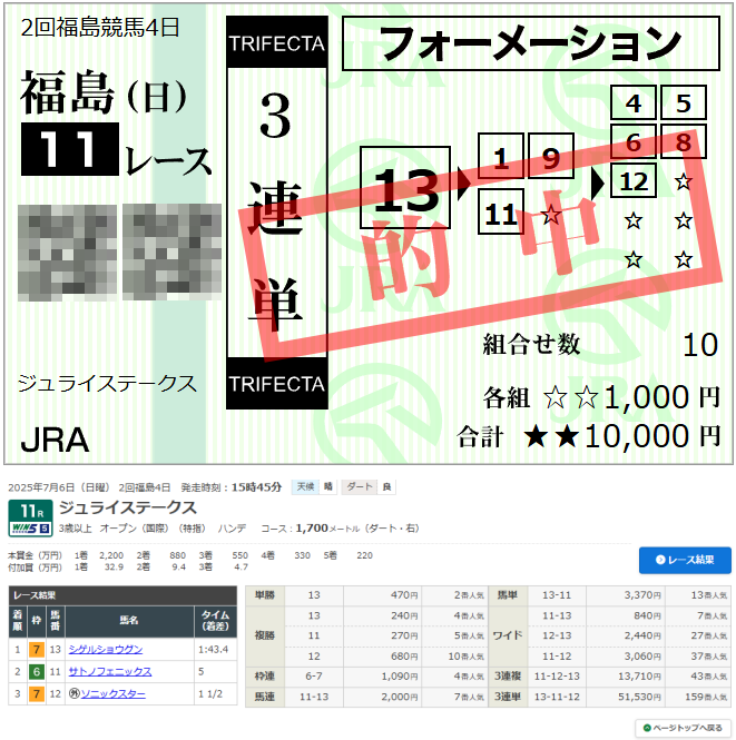 福島 11R ジュライステークス