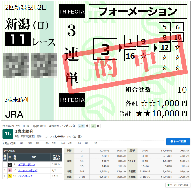 新潟 11R 3歳未勝利